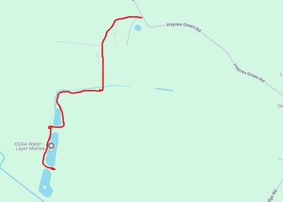 From the junction of the B1023 and the B1022 in Tiptree, take the B1022 out of Tiptree towards Colchester for approximately 1.25 miles. Go past the turning to the left sign poster to Messing and turn right into a narrow road, Hayes Green Road. After approximately 0.25 miles, turn right into the entrance of Haynes Green Farm. Follow the "Kelvedon District Angling Association" signs around the farm buildings and down the farm track. At the bottom of the track, turn right.
