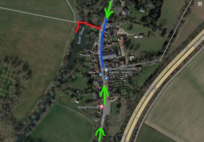 The River Stour in Stratford St Mary - Essex Bank Only - Superb fishing along this stretch of the River Stour. Upstream to Low Lift and downstream to Stratford Mill Pool. Carp, Bream, Roach, Dace, Pike, Perch, Barbel, & Chub, plus the occasional Trout showing. Access river stretch over footbridge in Lower Street (marked red on the map to the side), Stratford St Mary opposite Mill House. Car Parking on the public road where permissible (marked blue on the map to the side where possible).